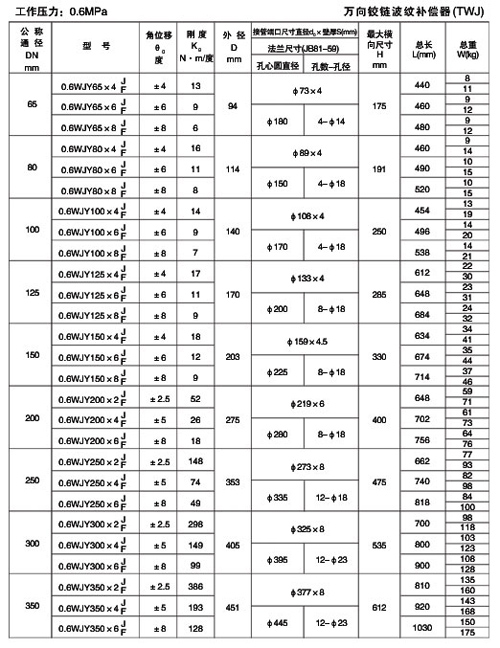 万向铰链波纹补偿器技术参数